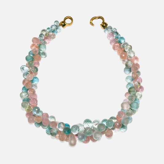 Aquamarin-Morganit-Kette mit vergoldetem Silberverschluss