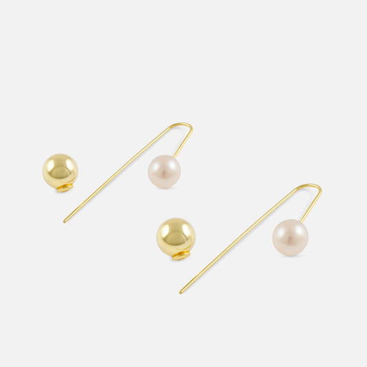 Ohrringe mit Zuchtperlen & vergoldeter Kugel – modern & elegant
