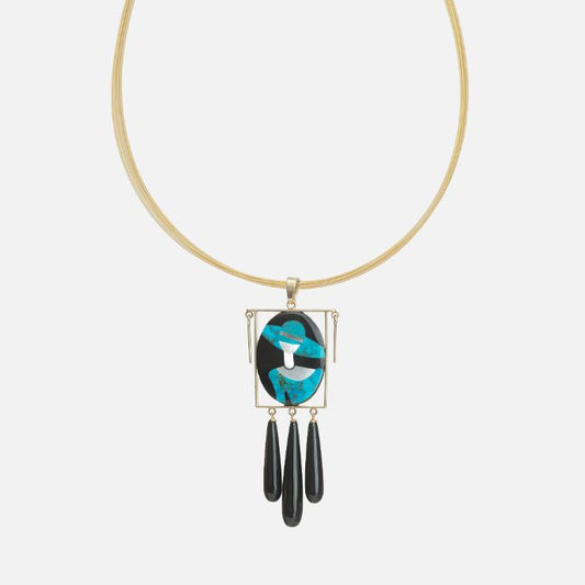 Anhänger mit Türkisplatte & Onyx in 18K Gelbgold