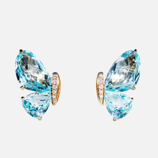 Ohrringe Schmetterling mit Topasen & Brillanten – 18K Gelbgold