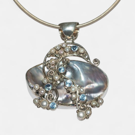 Anhänger mit Mabe-Perle, Blautopas & Süßwasserperlen
