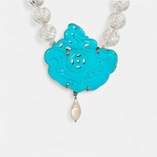 Kette aus Bergkristall mit Magnesit-Türkis Anhänger