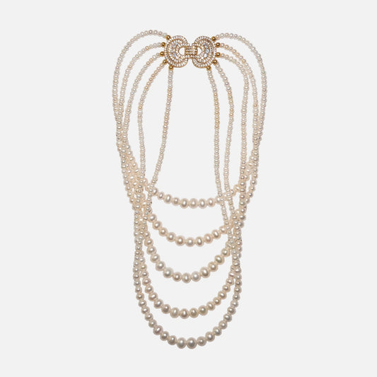 Exklusive Süsswasserperlen-Kette in 5 Reihen mit vergoldetem Silberverschluss