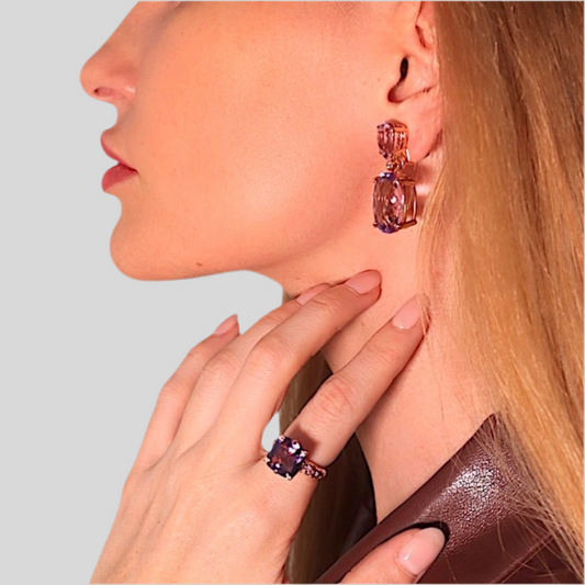 • Design-Ohrringe aus 18K Gelbgold mit Amethyst & Pink-Turmalin