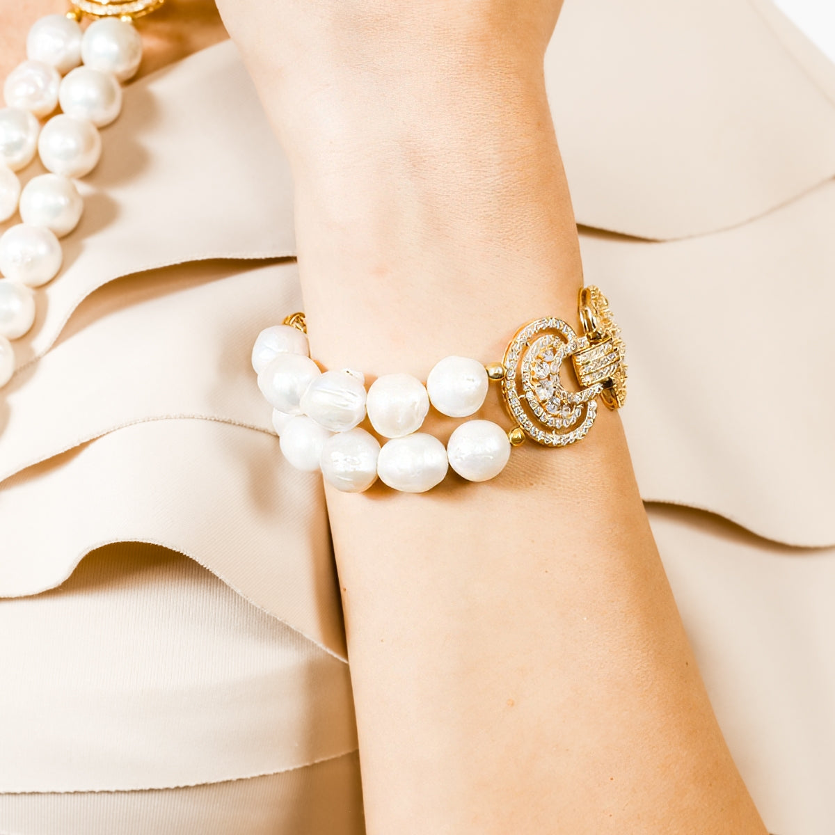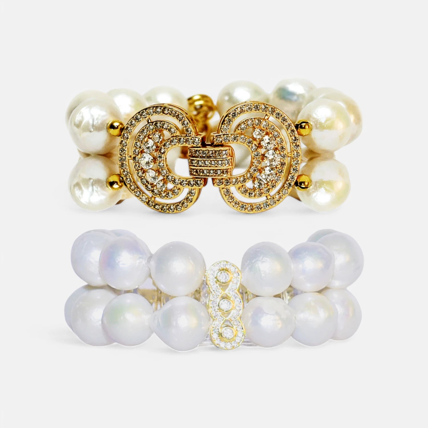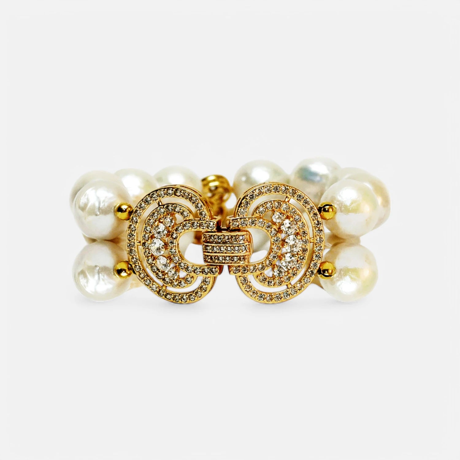 Armband aus 2 Reihen Zucht-Barockperlen mit...