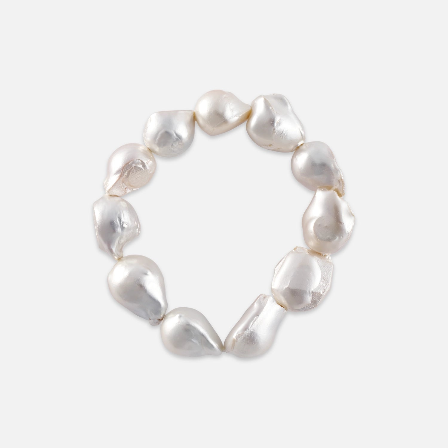 Elastisches Armband aus weißen Süßwasser-Barockperlen