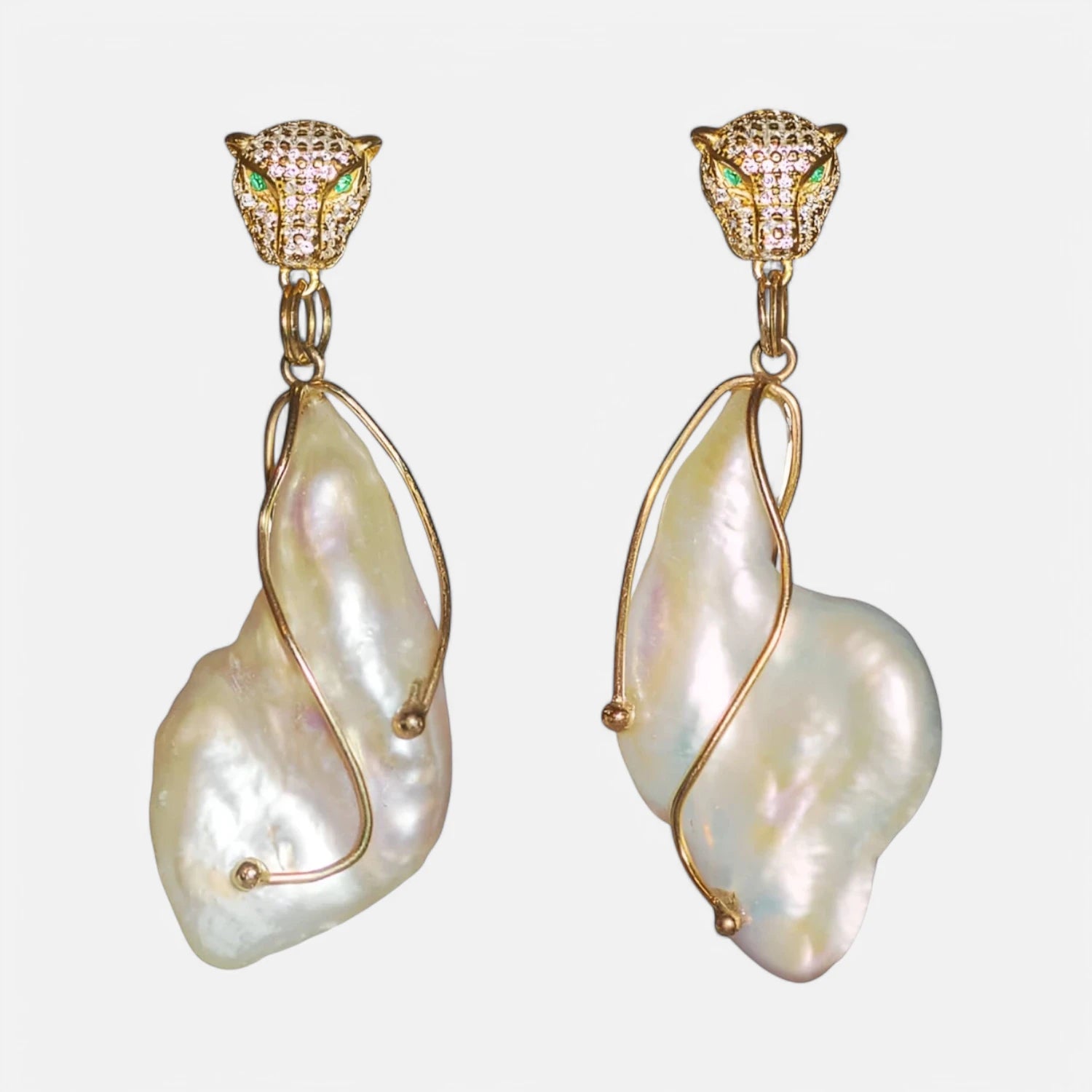 Süßwasserperlen-Ohrringe mit vergoldeten Tigerköpfen