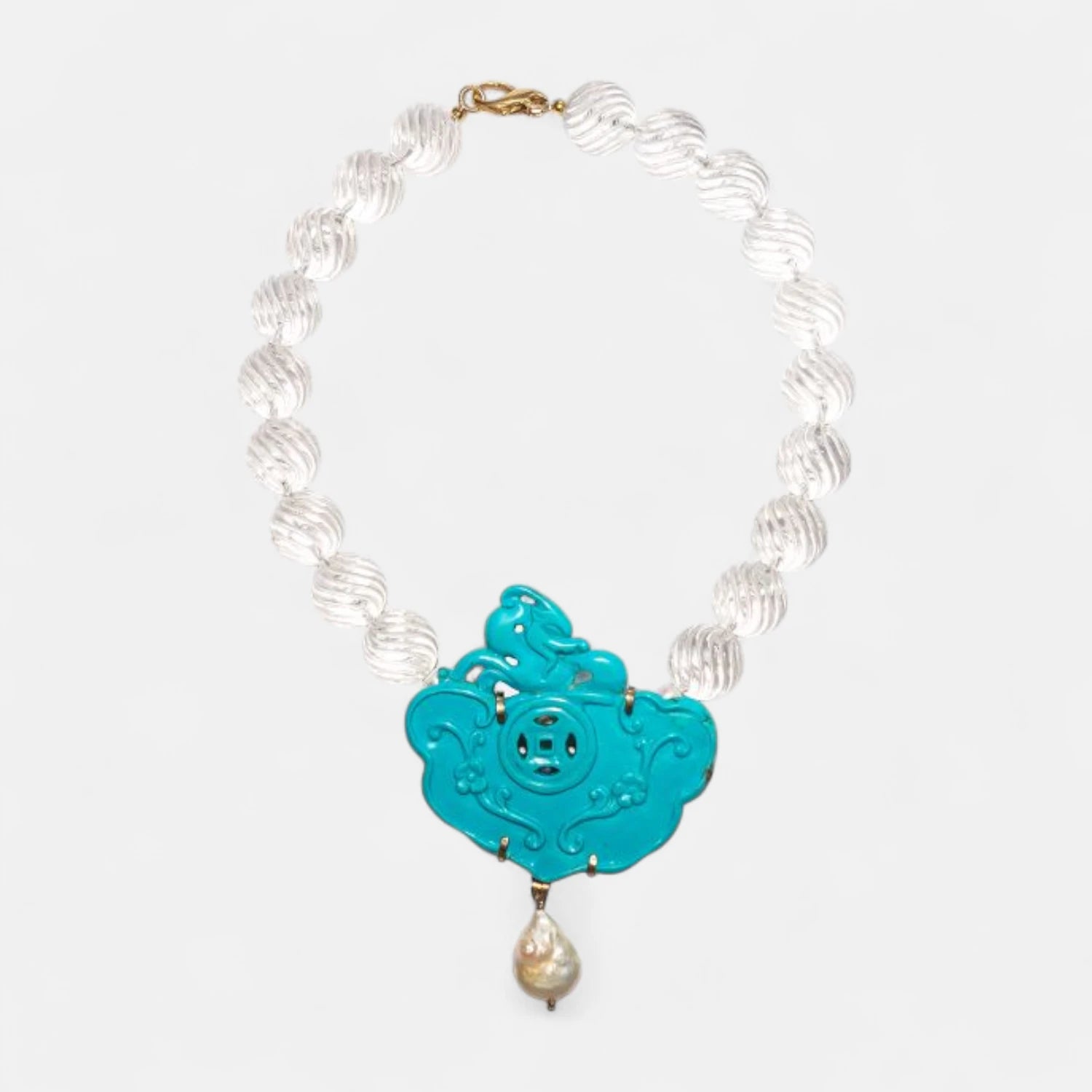 Kette aus Bergkristall mit Magnesit-Türkis Anhänger