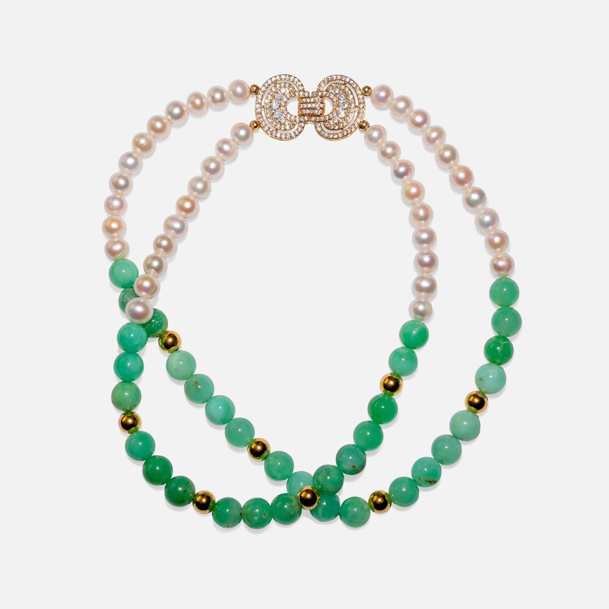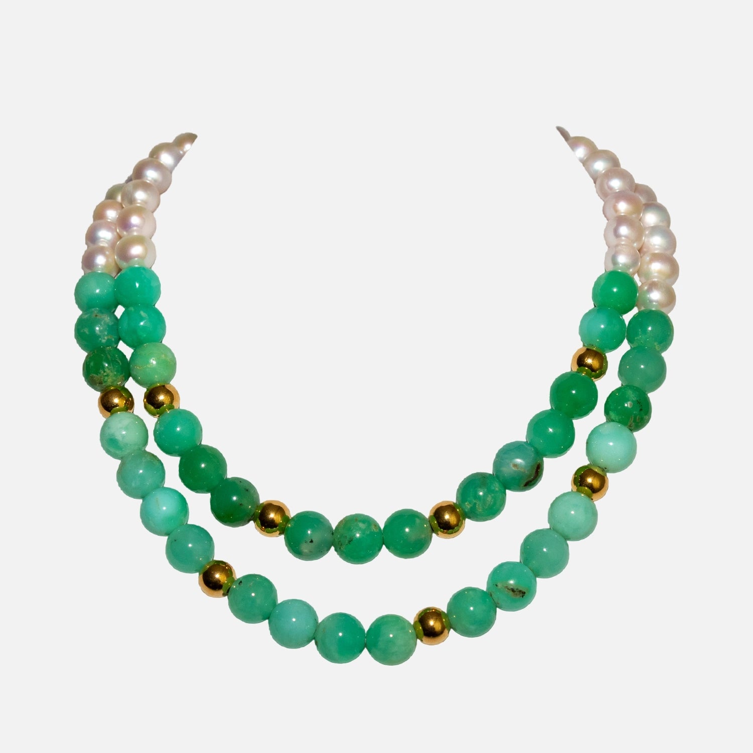 Zweireihige Kette aus Süsswasserperlen & Chrysopras