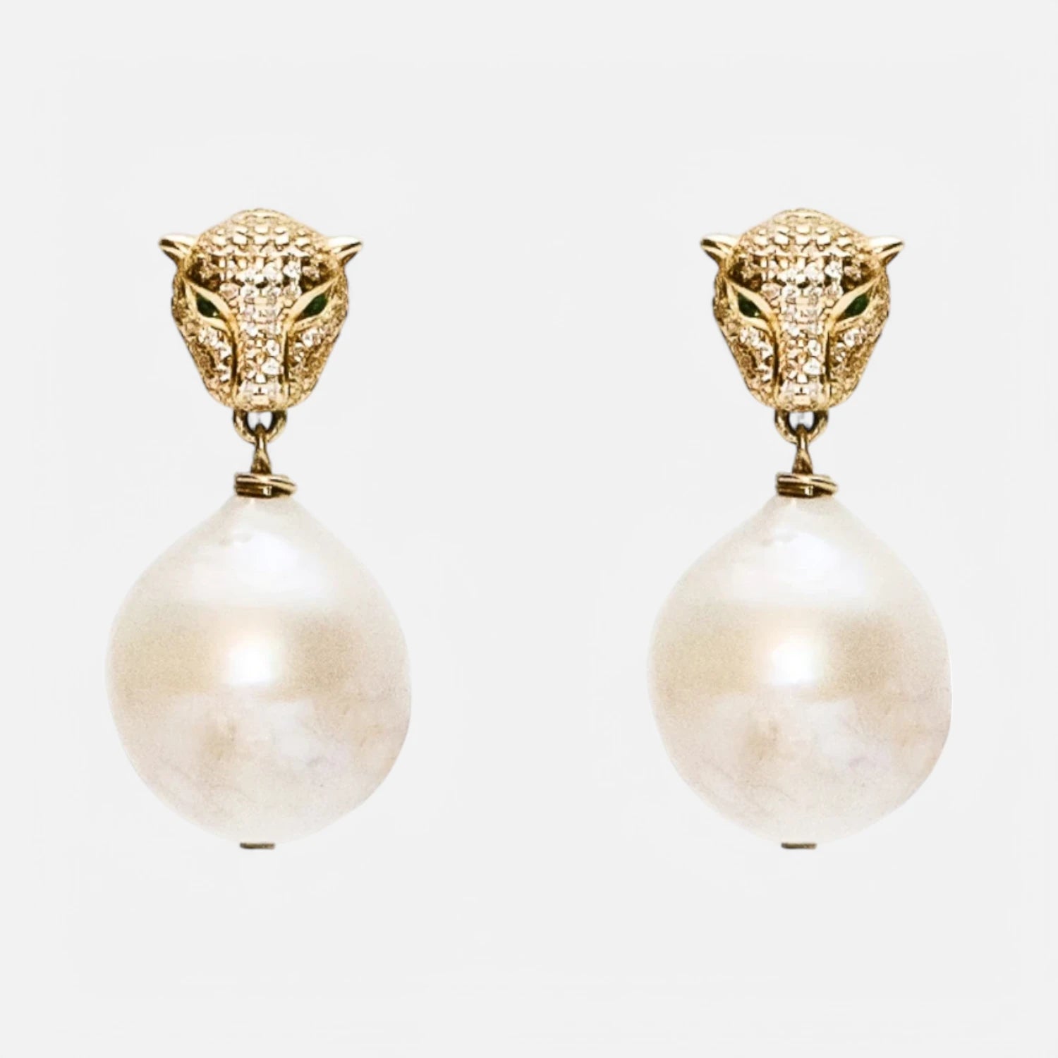 Tigerkopf & Barockperlen – Vergoldete Statement-Ohrringe