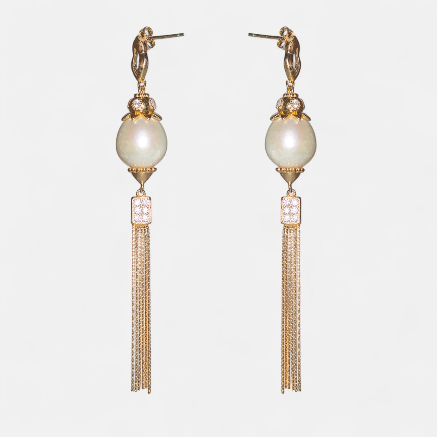 Ohrringe mit weißen Zuchtperlen & Quasten...