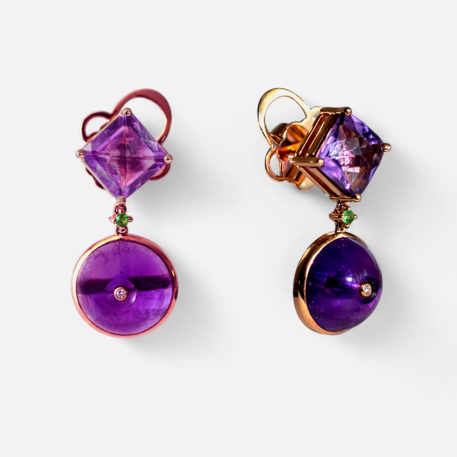Amethyst-Ohrringe mit grünem Akzent – 18K...