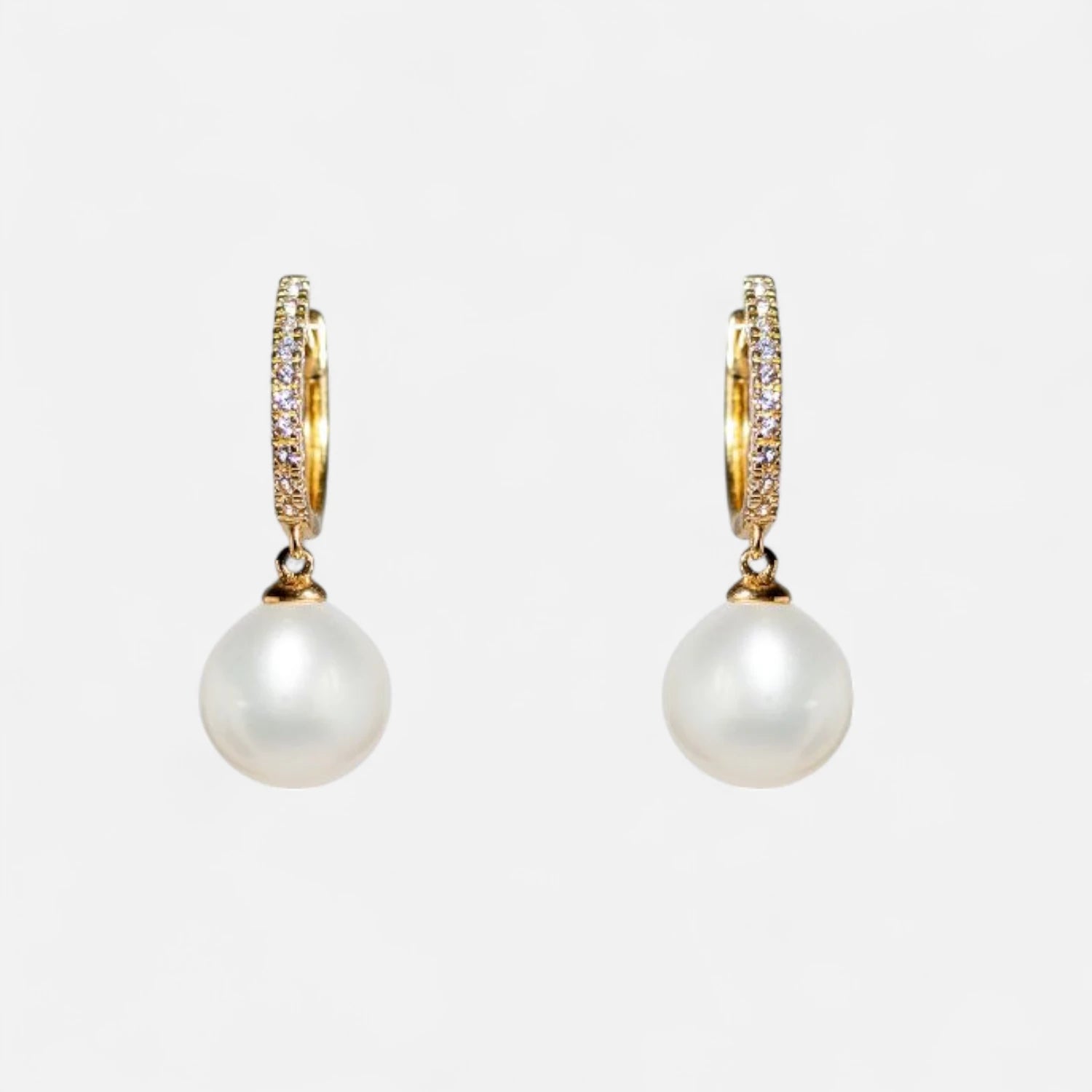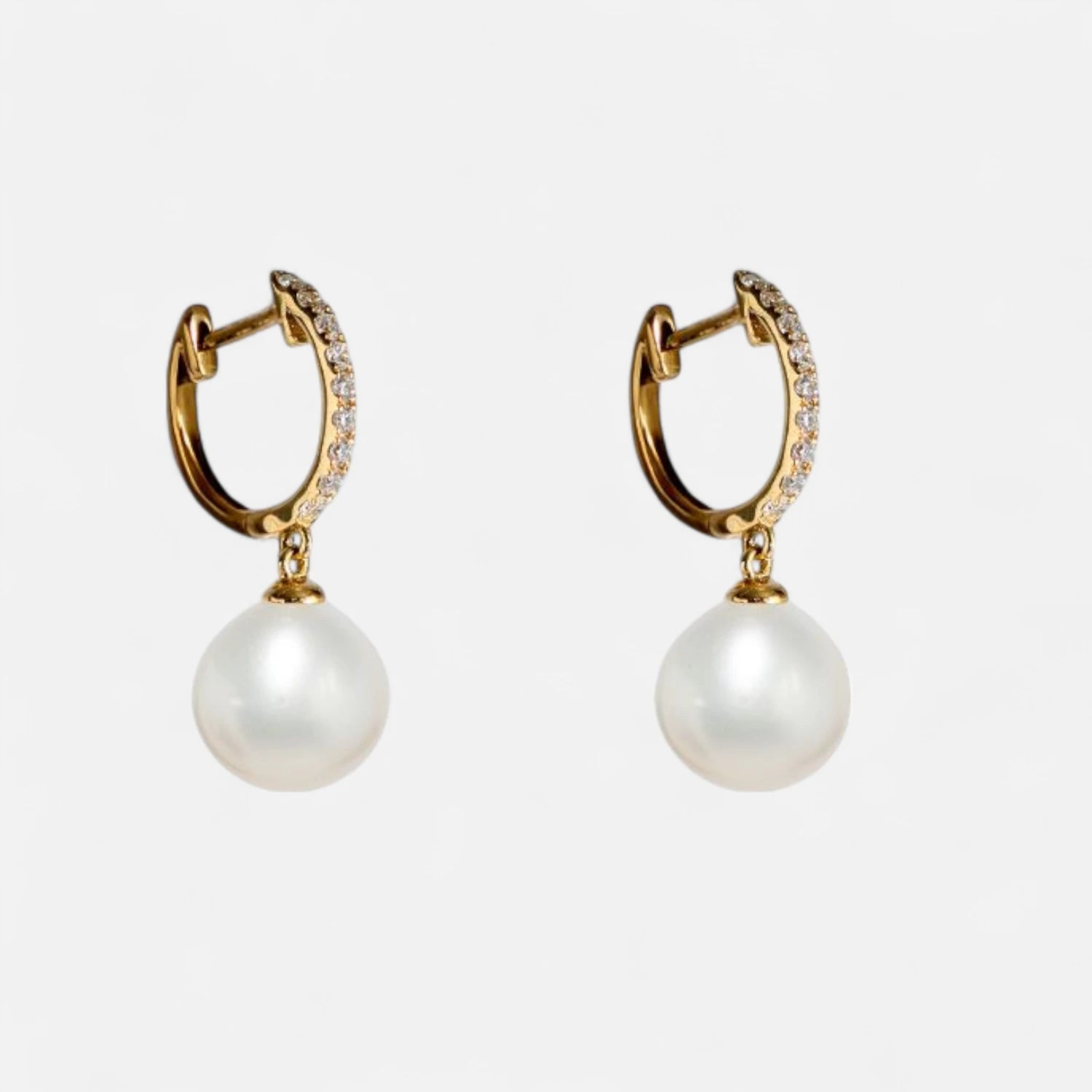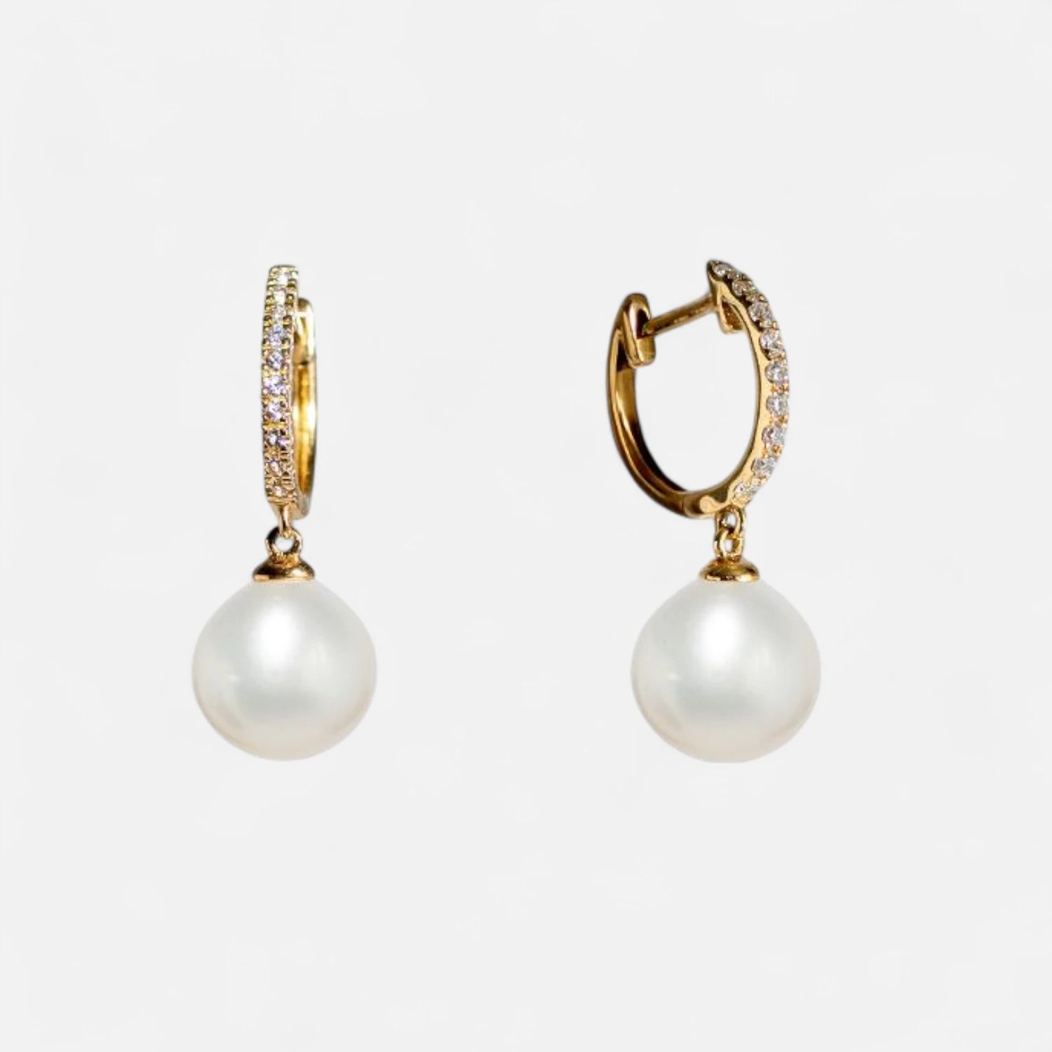 Südsee-Perlenohrringe mit Brillanten – 18K Gelbgold