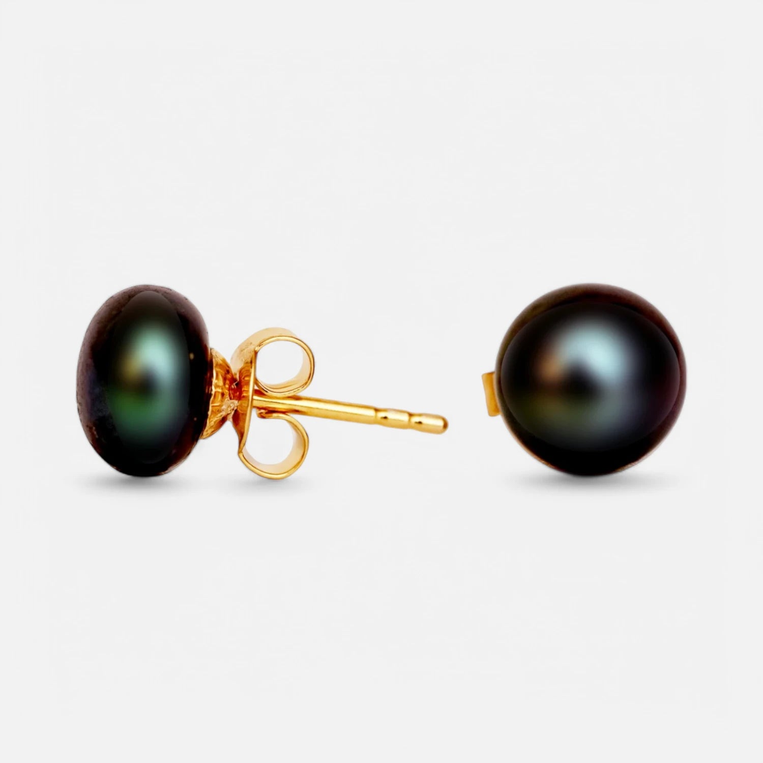Ohrstecker mit dunkelgrauen Süßwasserperlen und vergoldetem...
