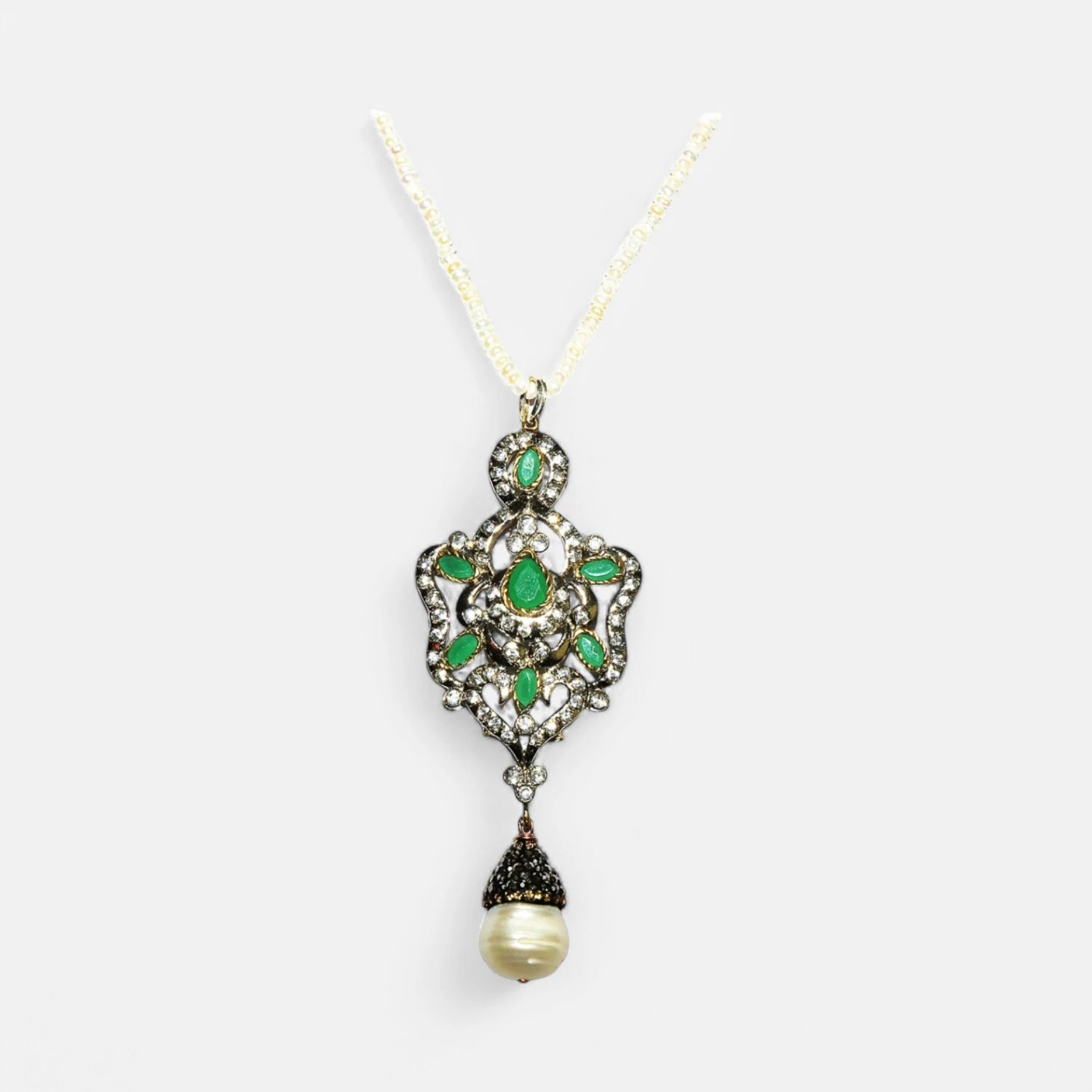 Perlenkette mit Art-Déco-Anhänger aus Kristallen und...