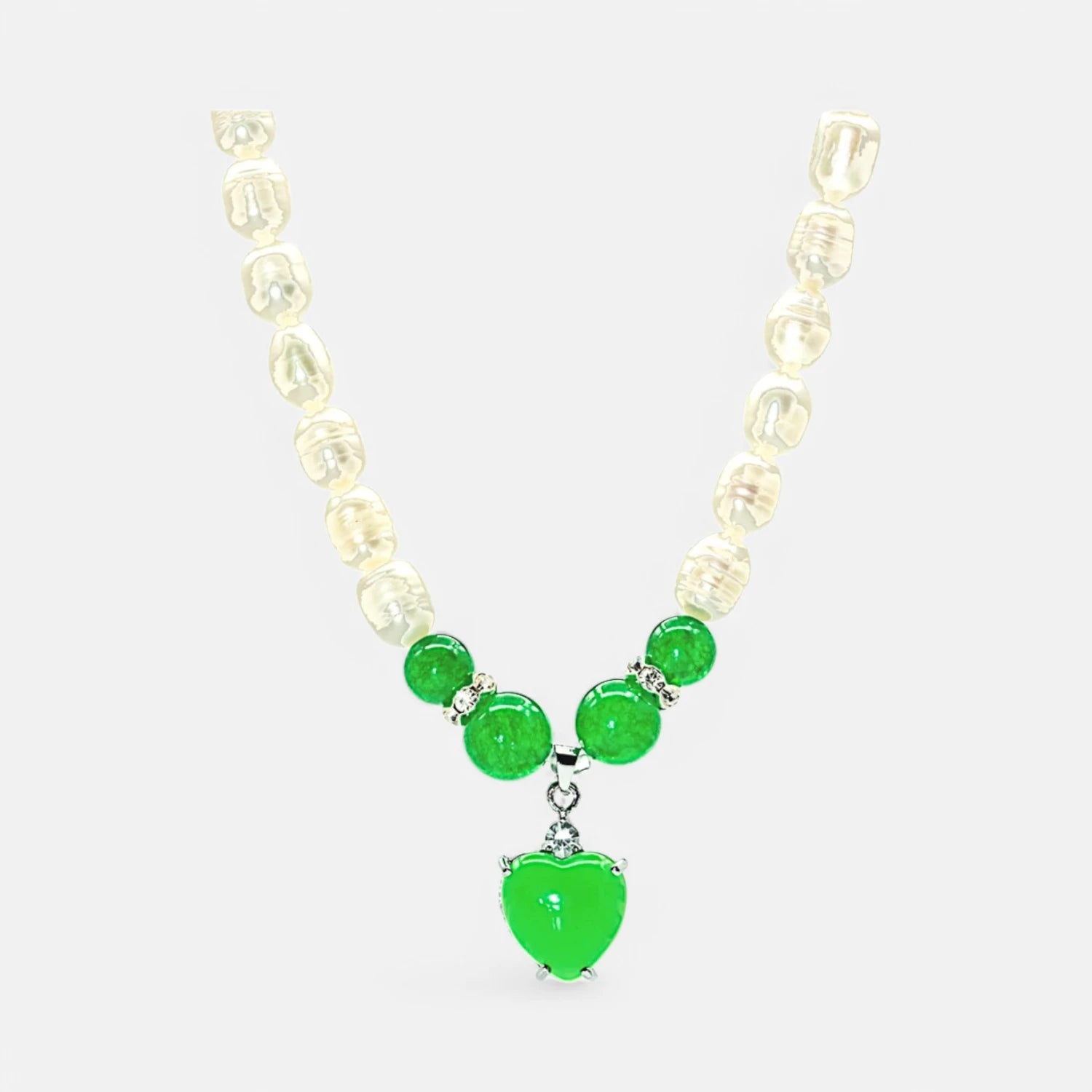 Süßwasserperlenkette mit grünem Jade-Herzanhänger