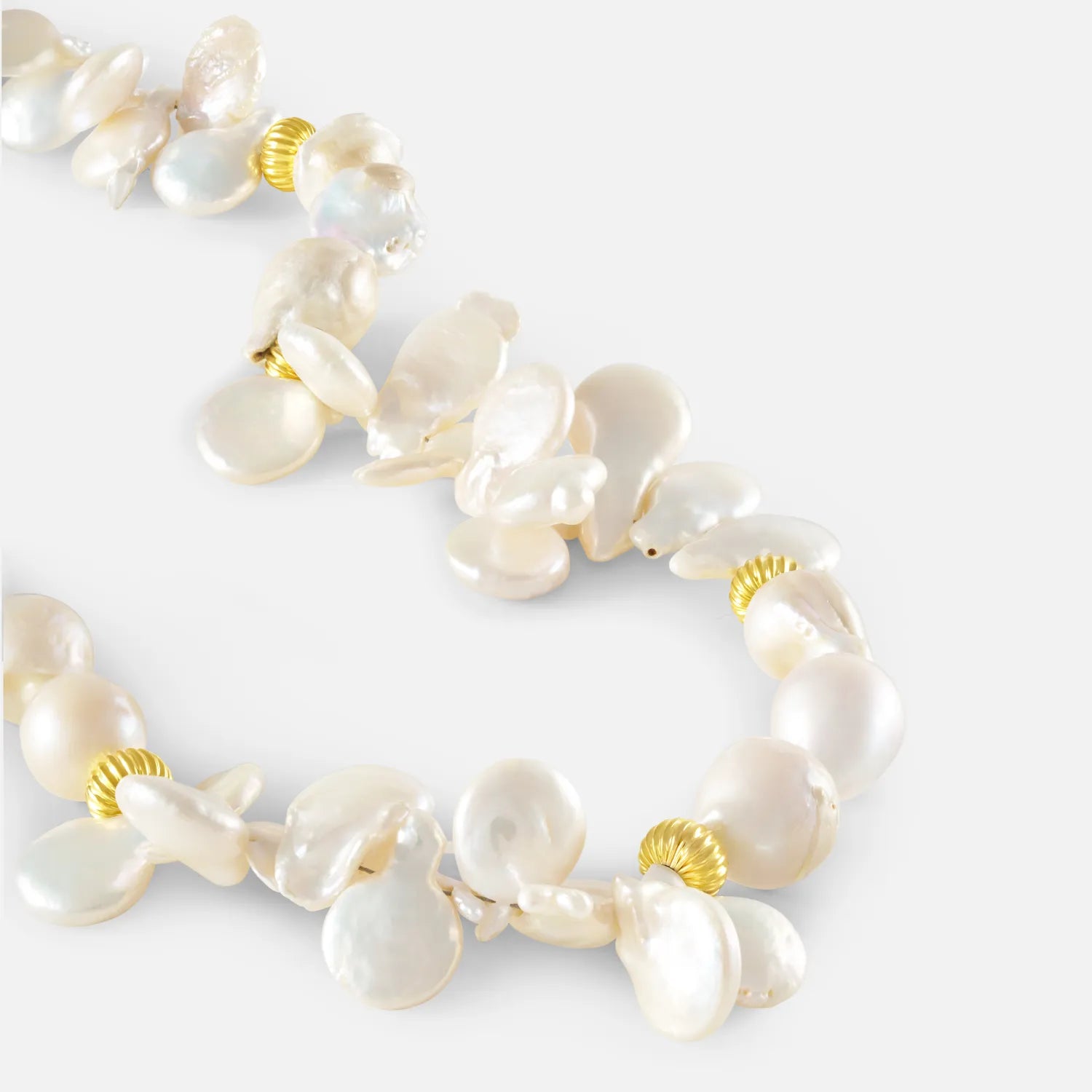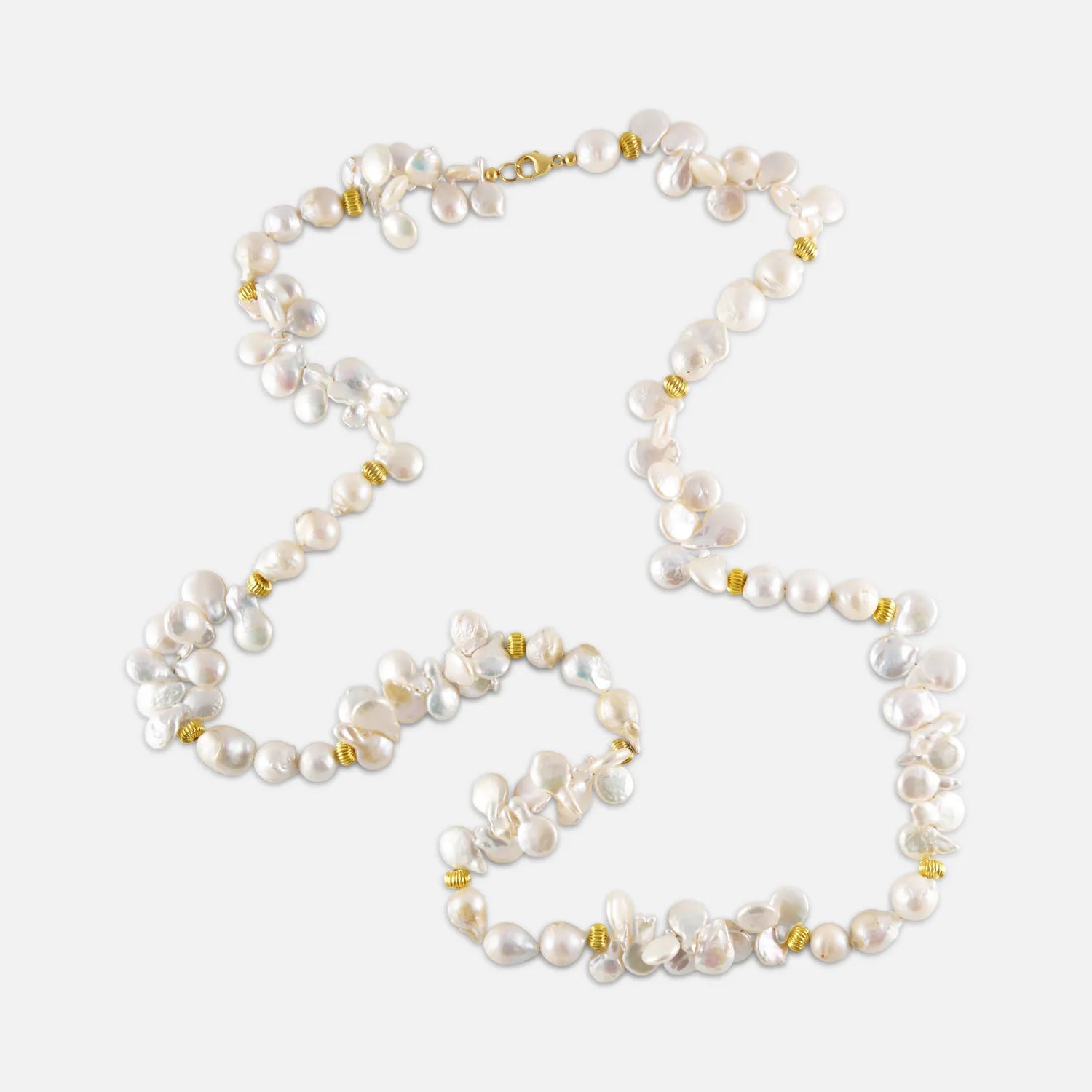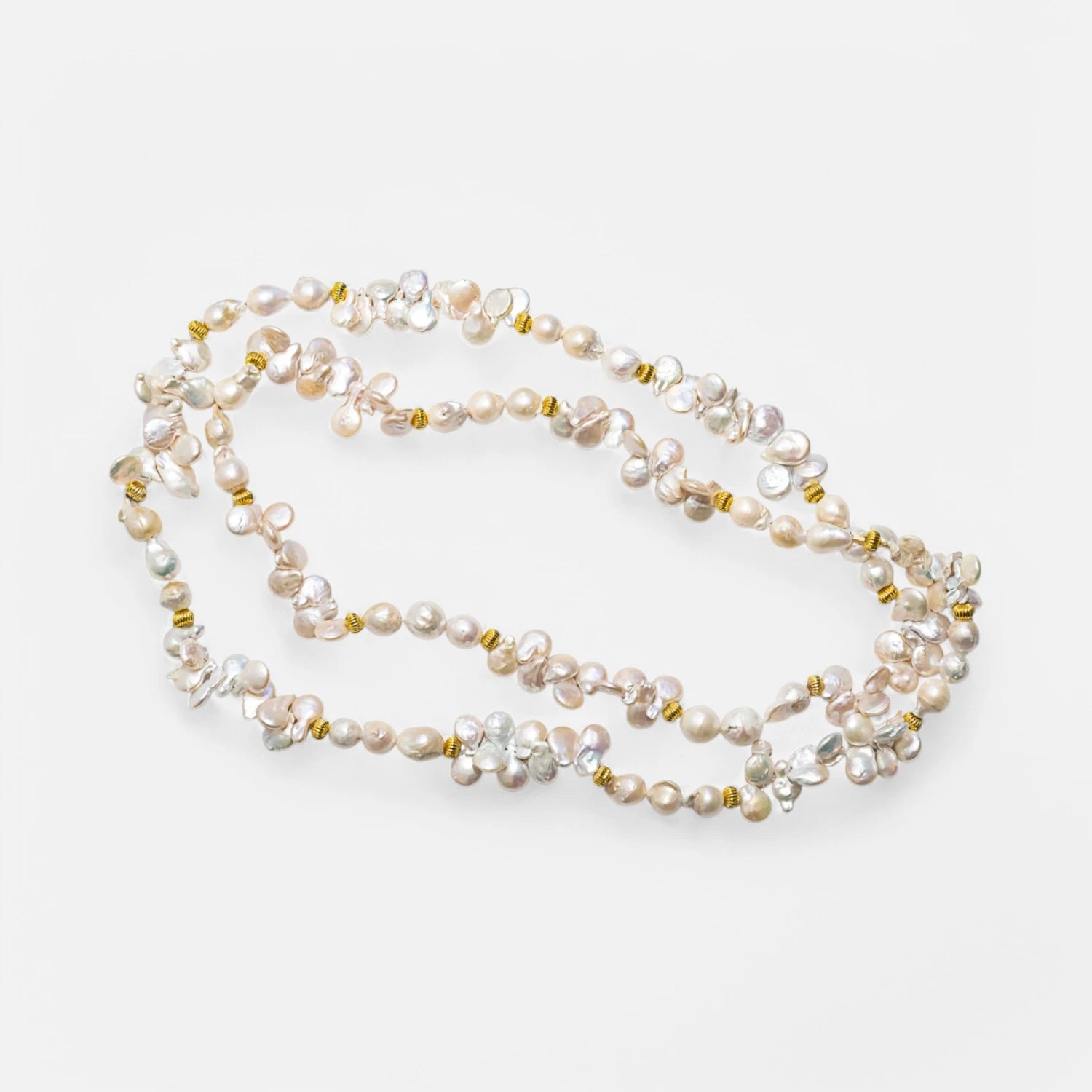 Lange Perlenkette mit Barockperlen & vergoldeten...