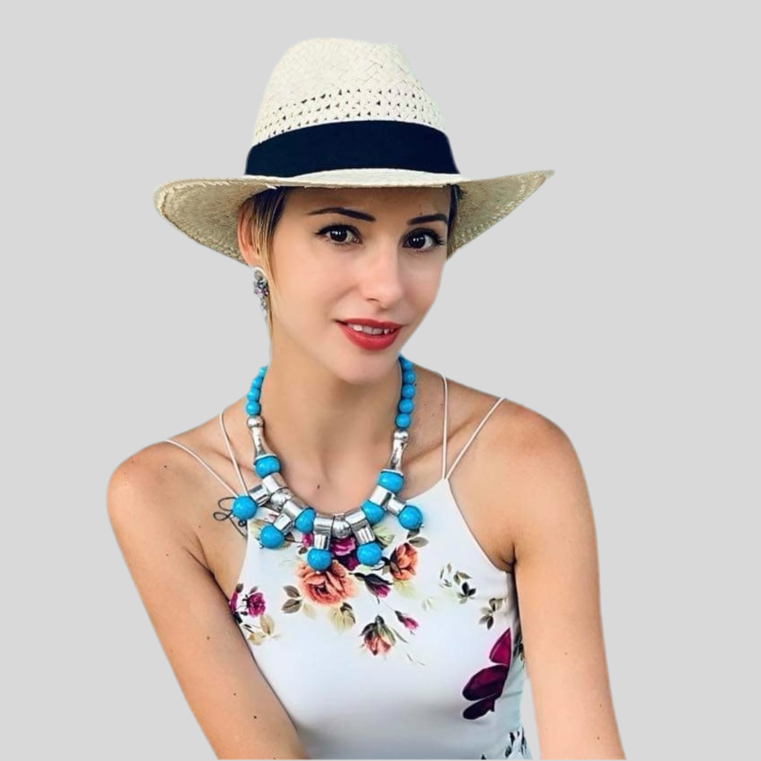 Design-Kette mit Türkis-Kugeln & silberfarbenen Metallelementen