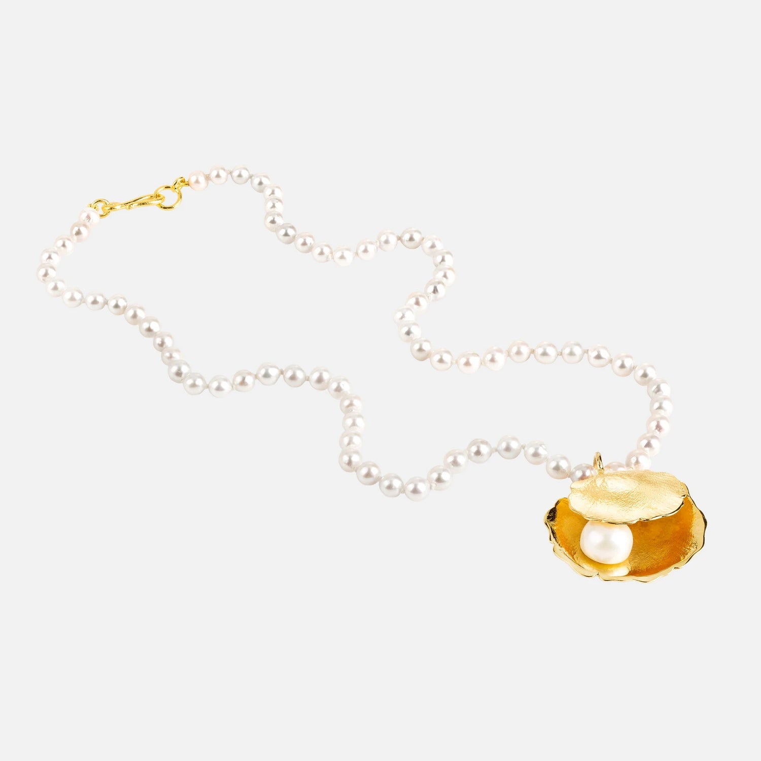 Vergoldete Perlenkette mit skulpturalem Anhänger
