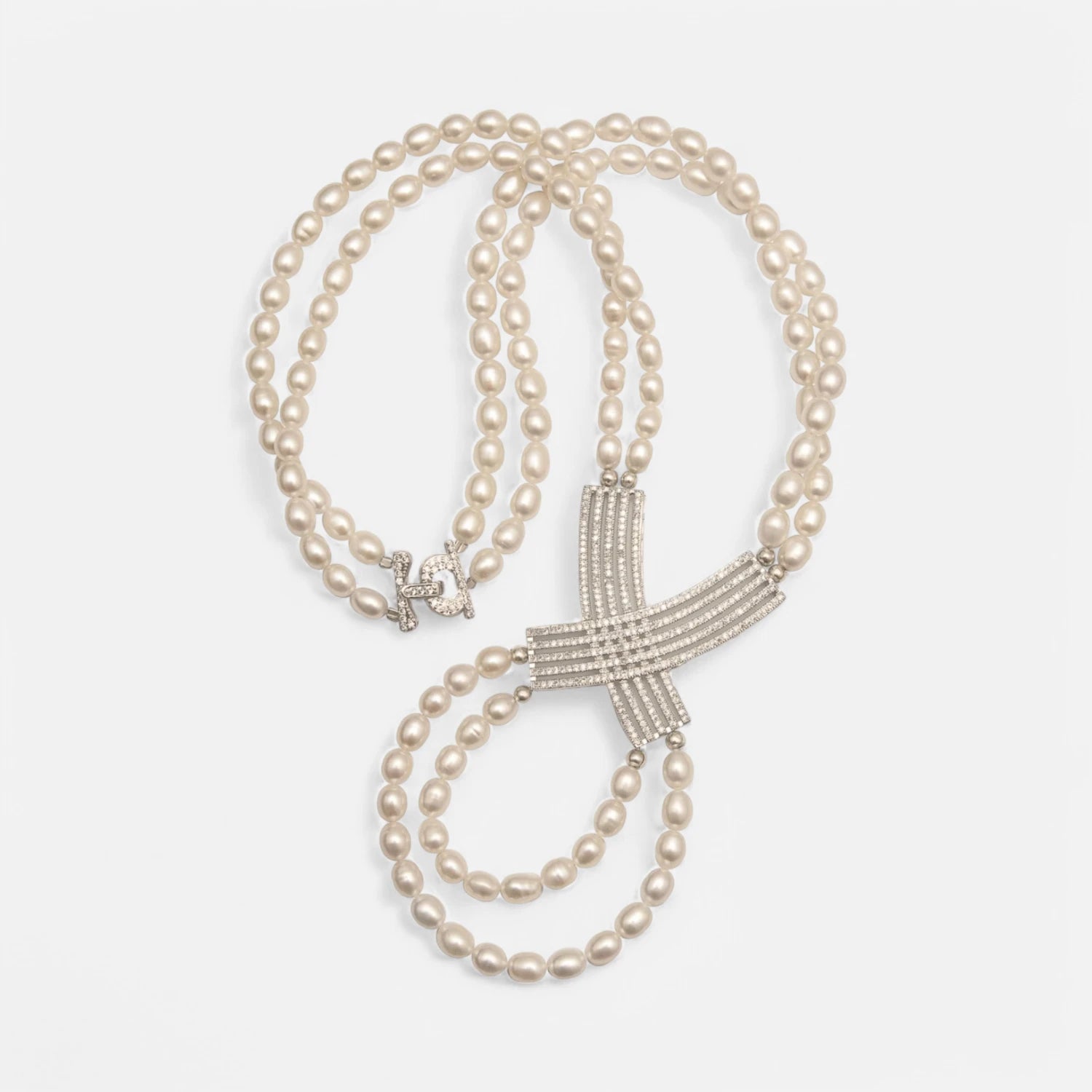 Zweireihige Süßwasserperlenkette mit Silber-Element